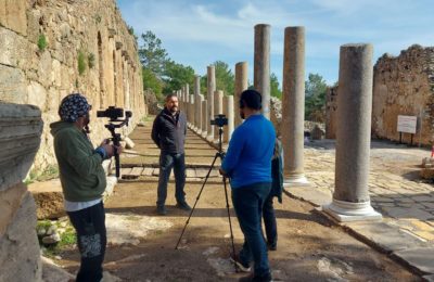 Kültür ve Turizm Bakanlığı ile Habertürk’ün ortak projesi kapsamında hazırlanan tarih belgeseli çekimleri için Alanya’ya gelen ekip tarafından Syedra...