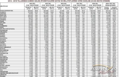 Ocak-Mayıs dönemi ziyaretçi istatistikleri