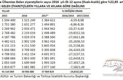 [:tr]2017 yılında ülkemize ve Antalya'ya gelen ziyaretçi istatistikleri açıklandı.[:en][:]